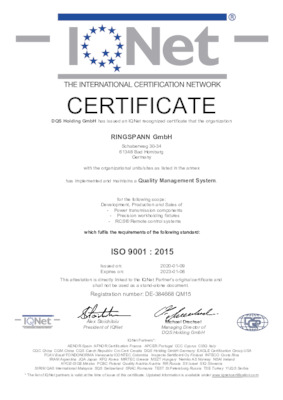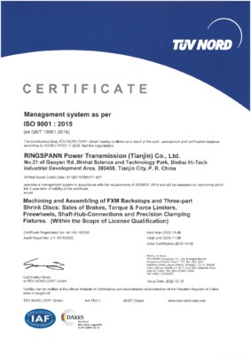 ISO 9001 DQS ISO 9001 Zertifikat RINGSPANN Gruppe durch DQS [757 kB] ISO 9001 Certificate RINGSPANN Group by DQS [757 kB] IQNet ISO 9001 Certificate RINGSPANN Group by IQNet [121 kB] TÜV Nord CERT ISO 9001 Certificate RINGSPANN China by TÜV Nord CERT [98 kB] ISO 9001 证书 - 瑞班机电传动技术(天津)有限公司 - 依据 TÜV NORD CERT [197 kB] TÜV Süd South Asia ISO 9001 Certificate RINGSPANN India by TÜV Süd South Asia [2294 kB] AFAQ ISO 9001 AFNOR Certification SIAM RINGSPANN SA [189 kB]