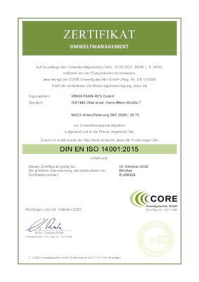 ISO 14001 RINGSPANN GmbH ISO 14001 Zertifikat RINGSPANN GmbH [248 kB] ISO 14001 Certificate RINGSPANN GmbH [266 kB] RINGSPANN RCS GmbH ISO 14001 Zertifikat RINGSPANN RCS GmbH [247 kB] ISO 14001 Certificate RINGSPANN RCS GmbH [266 kB]