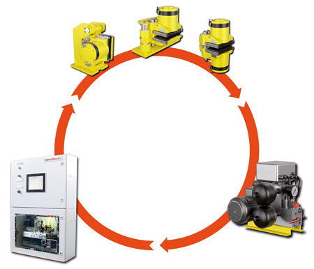 The technological core of the controlled braking made by RINGSPANN is the HCO-2R hydraulic power unit, which offers manufacturers and operators numerous possibilities for process optimisation. (Image: RINGSPANN)
