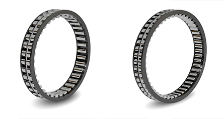 El rodamiento radial de la rueda libre ER se realiza a través de varias parejas de rodillos integrados en la jaula de plástico modificada. El modelo HLR incluye en la rueda libre un disco de cojinete axial especial, por lo que no es necesaria la instalación de un cojinete adicional, incluso con si el eje de transmisión del motor es de engranajes helicoidales. Thomas Heubach cuenta que “Ambos diseños con rodamientos integrados ahora están pendientes de ser aprobada su patente y las primeras unidades ya están siendo instaladas en e-drives”. En ambos casos, también se puede utilizar el espacio libre ganado gracias a la eliminación de los rodamientos para ensanchar la pista de las ruedas libres, lo que puede aumentar su capacidad de par.